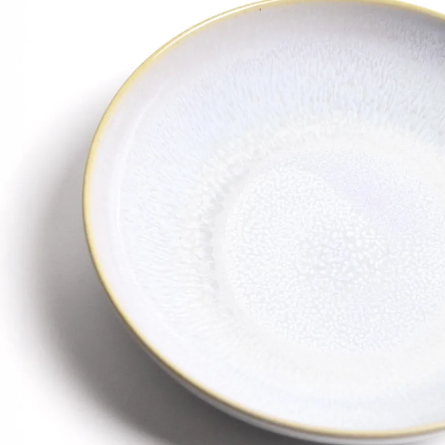 Émail : Blanc réactif aux reflets nacrés, qui tirent vers le rose lilas.