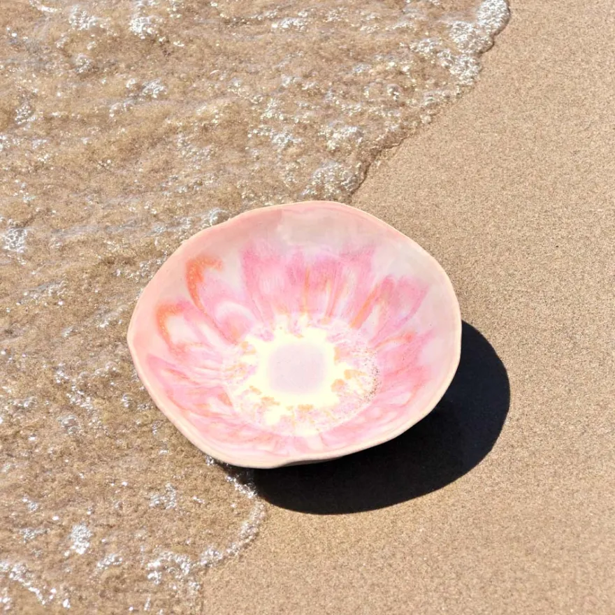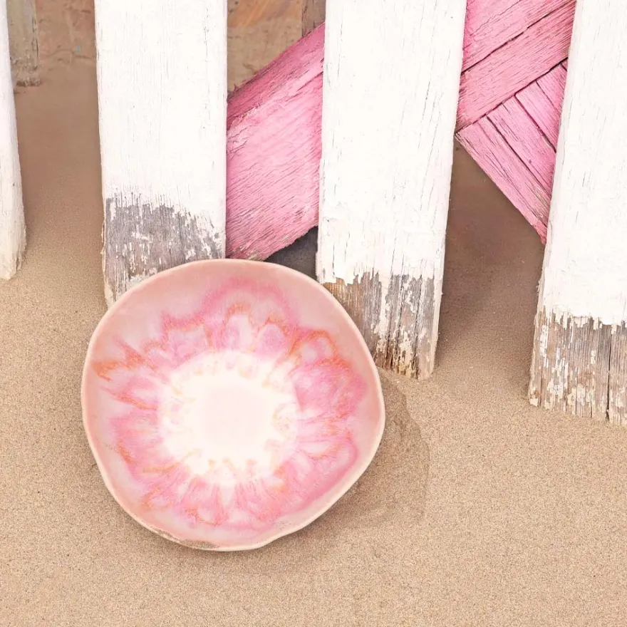 Émail : Cet émail réactif évoque les teintes délicates des anémones de mer, entre beige poudré et rose minéral, rehaussées