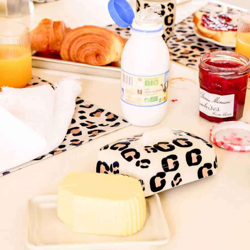Émail : Chaque tache est appliquée à la main, à l’éponge, dans un geste libre et instinctif. Un motif vivant, jamais figé, qui rend chaque pièce unique. L’élégance du léopard, revisitée par la main de l’artisan.