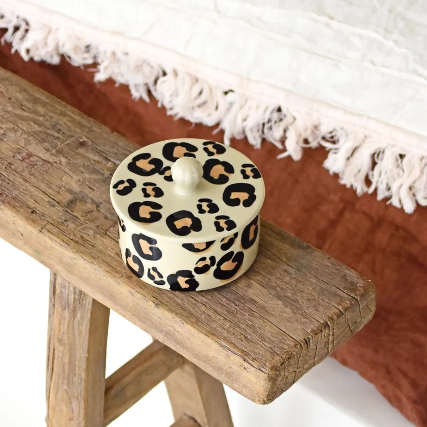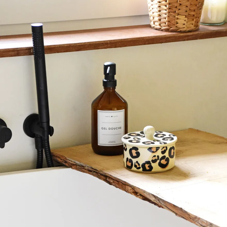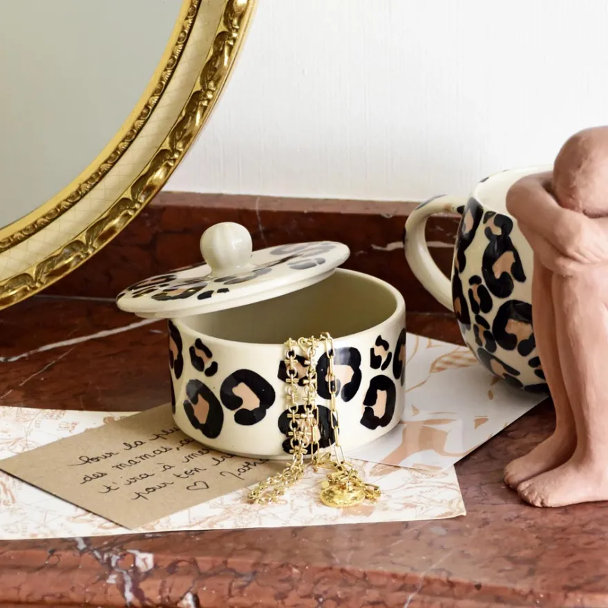 Émail : Chaque tache est appliquée à la main, à l’éponge, dans un geste libre et instinctif. Un motif vivant, jamais figé, qui rend chaque pièce unique. L’élégance du léopard, revisitée par la main de l’artisan.