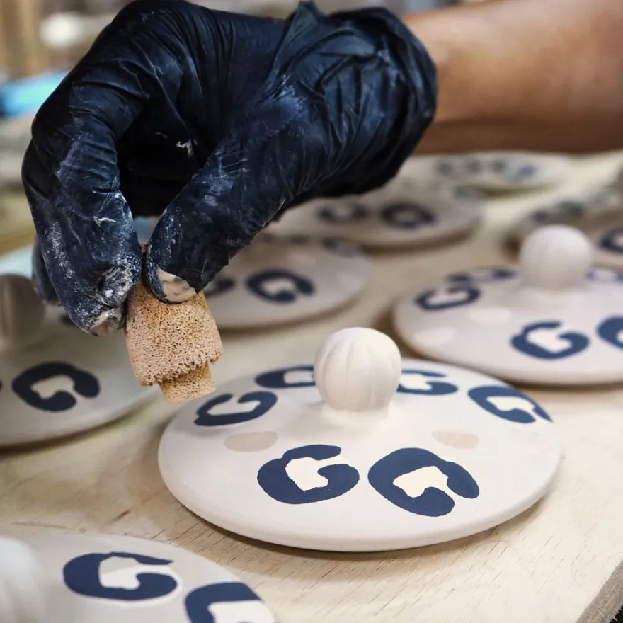 Dans le four, la réaction chimique des émaux révèle des nuances de couleur singulières, ce qui rend chaque pièce parfaitement unique.