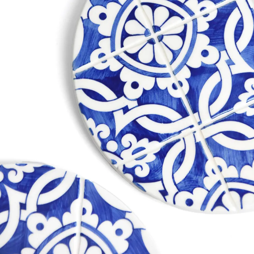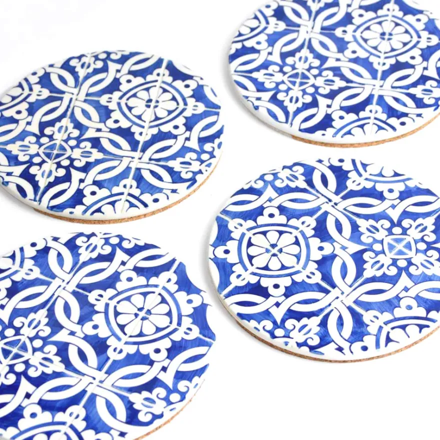 Inspirés du fameux carrelage portugais, ces dessous de plat ajouteront une touche de couleur à votre décoration tout en protégeant vos tables des boissons chaudes ou froides grâce à leur base en liège.