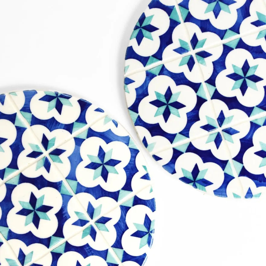 Inspirés du fameux carrelage portugais, ces dessous de plat ajouteront une touche de couleur à votre décoration tout en protégeant vos tables des boissons chaudes ou froides grâce à leur base en liège.