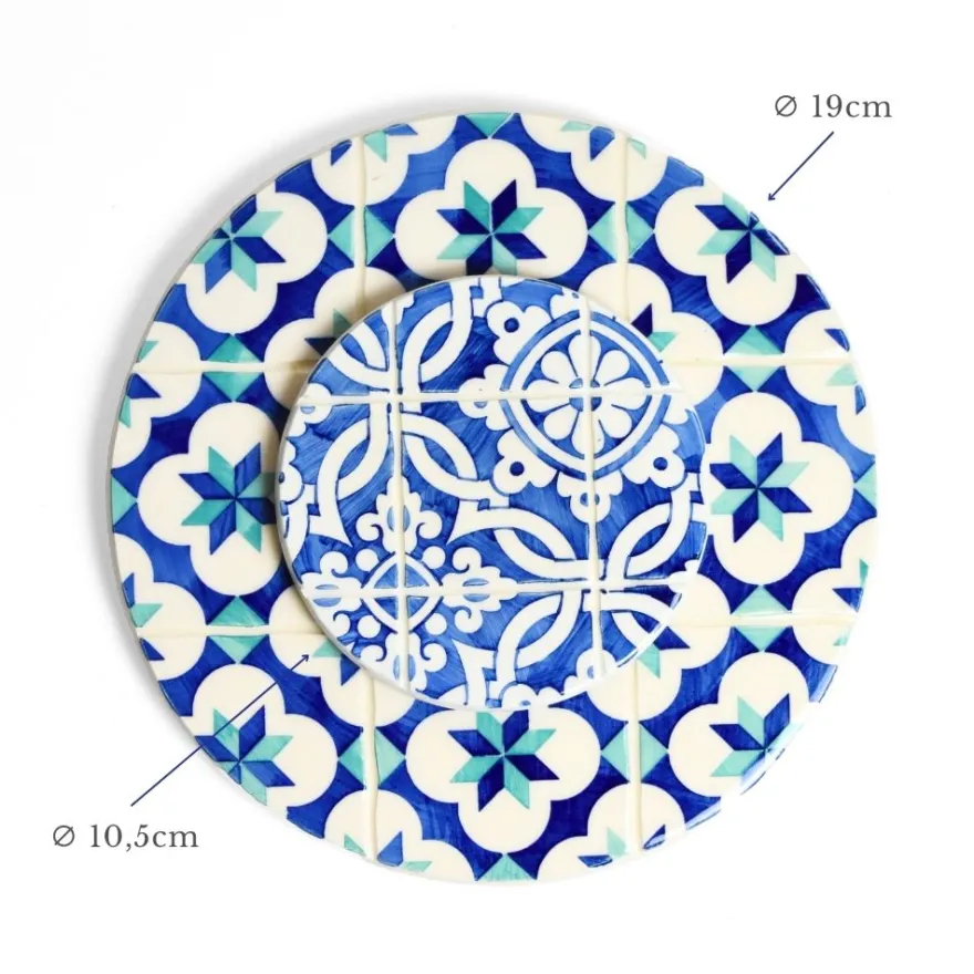 Chaque pièce et chaque motif sont peints à la main par un petit artisan niché au nord du Portugal. Des nuances d’aspects peuvent donc apparaître rendant chaque pièce unique.
