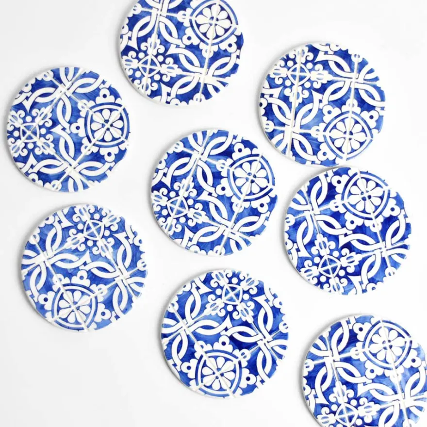 Inspirés du fameux carrelage portugais, ces dessous de verre ajouteront une touche de couleur à votre décoration tout en protégeant vos tables des boissons chaudes ou froides grâce à leur base en liège.