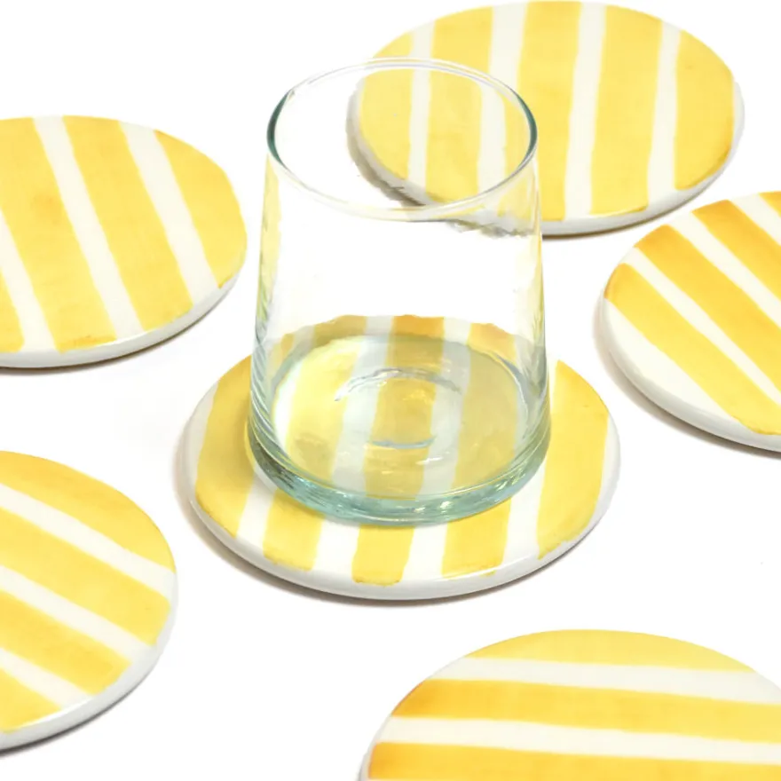 Inspirés du fameux carrelage portugais, ces dessous de verre ajouteront une touche de couleur à votre décoration tout en protégeant vos tables des boissons chaudes ou froides grâce à leur base en liège.