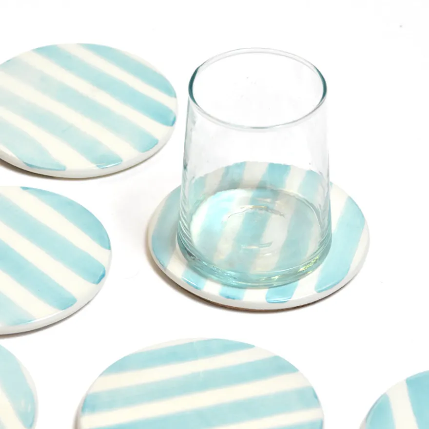 Inspirés du fameux carrelage portugais, ces dessous de verre ajouteront une touche de couleur à votre décoration tout en protégeant vos tables des boissons chaudes ou froides grâce à leur base en liège.