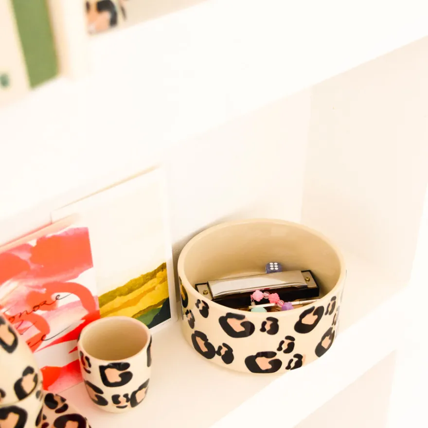 Émail : Chaque tache est appliquée à la main, à l’éponge, dans un geste libre et instinctif. Un motif vivant, jamais figé, qui rend chaque pièce unique. L’élégance du léopard, revisitée par la main de l’artisan.