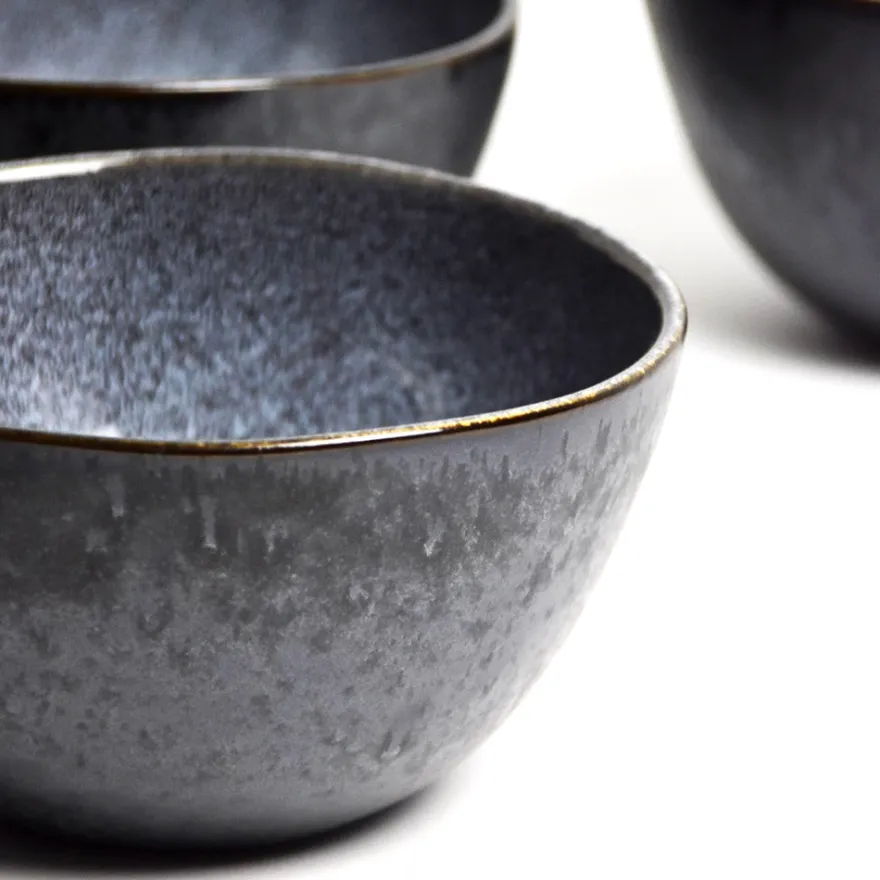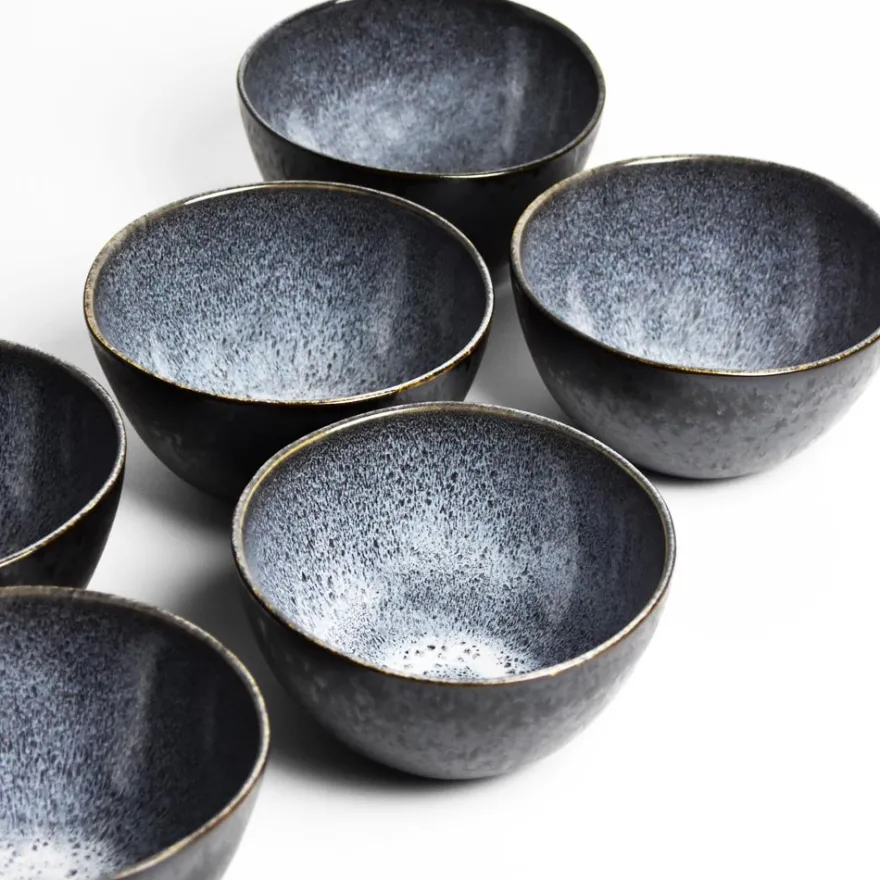 Émail : Un émail noir mat sur l’extérieur des pièces avec des effets réactifs blancs / bleutés brillants sur l’intérieur.