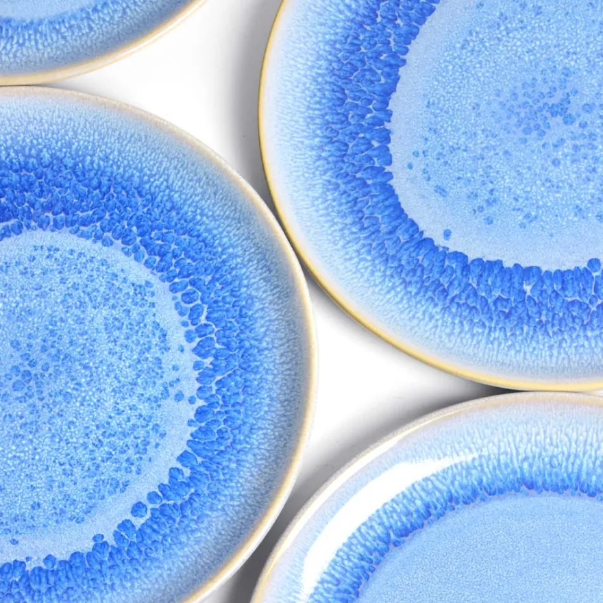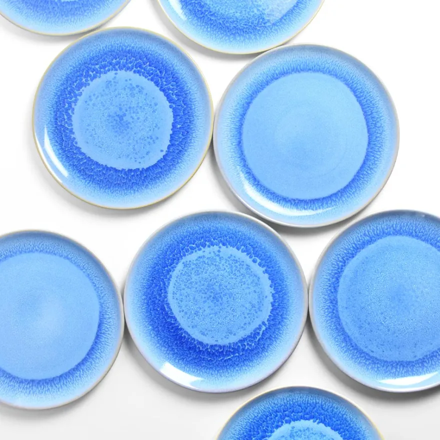 Émail : Un bleu profond, entre lapis et azur, qui prolonge l’été sur vos tables. Chaque pièce révèle des effets de matière uniques, entre éclat brut et douceur minérale.