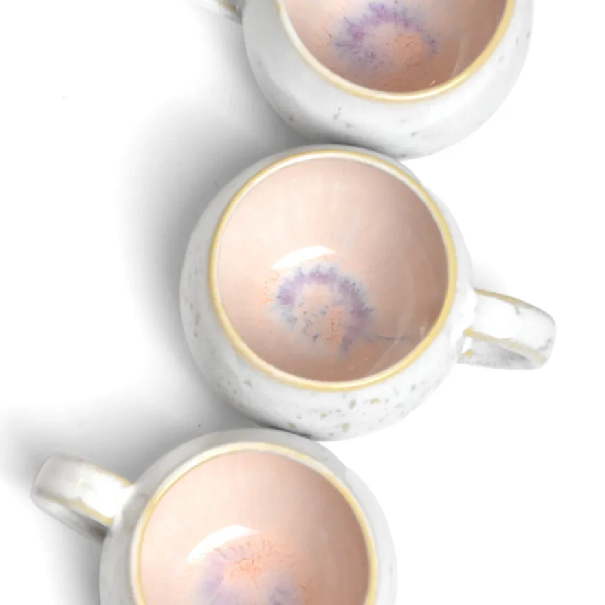 Émail : Un vieux rose qui tire vers le pastel à l’intérieur de la pièce, mixé avec un blanc moucheté à l’extérieur.