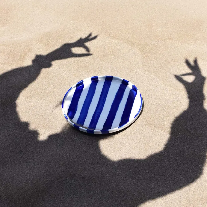 À l’heure du goûter, du dessert ou d’un déjeuner léger, la petite assiette Linhas trouve naturellement sa place. Ses rayures peintes à la main en font un basique pas si basique, à mixer ou empiler sans modération.