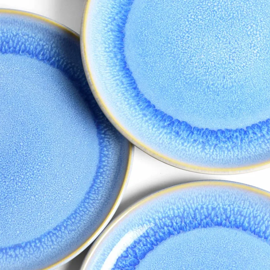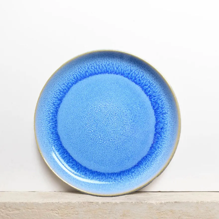 Émail : Un bleu profond, entre lapis et azur, qui prolonge l’été sur vos tables. Chaque pièce révèle des effets de matière uniques, entre éclat brut et douceur minérale.