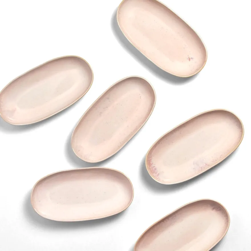 Émail : Un vieux rose qui tire vers le pastel à l’intérieur de la pièce, mixé avec un blanc moucheté à l’extérieur.