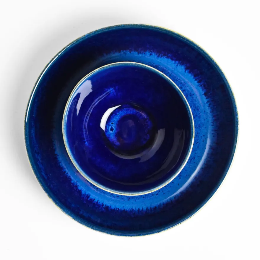 Émail : Bleu odyssée, un émail bleu royal réactif avec des nuances bleu cobalt à l’intérieur de la pièce.