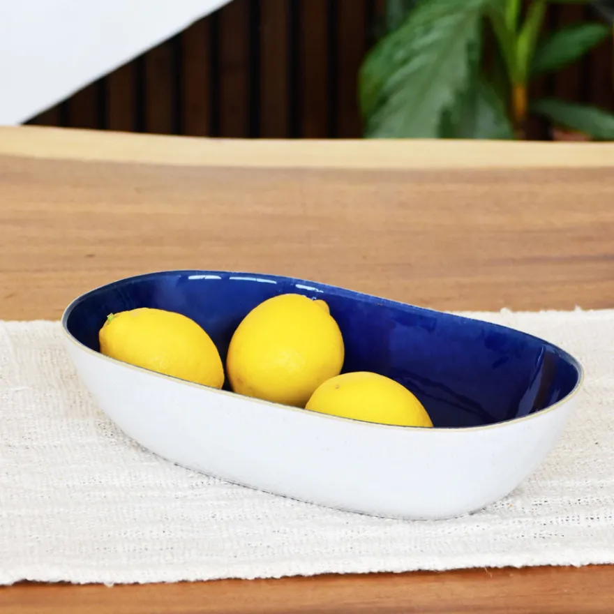 Avec son format allongé, ce plat en grès met en valeur tout ce que vous y déposez, comme un véritable bouquet de saveurs. Idéal pour présenter des légumes rôtis ou quelques fruits de saison au centre de la table, il ajoute une touche élégante à vos repas.