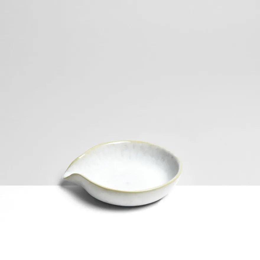 Émail : Blanc audacieux, un émail blanc réactif et légèrement moucheté, appliqué sur l’ensemble de la pièce. Les extrémités sont émaillées avec une pipette.
