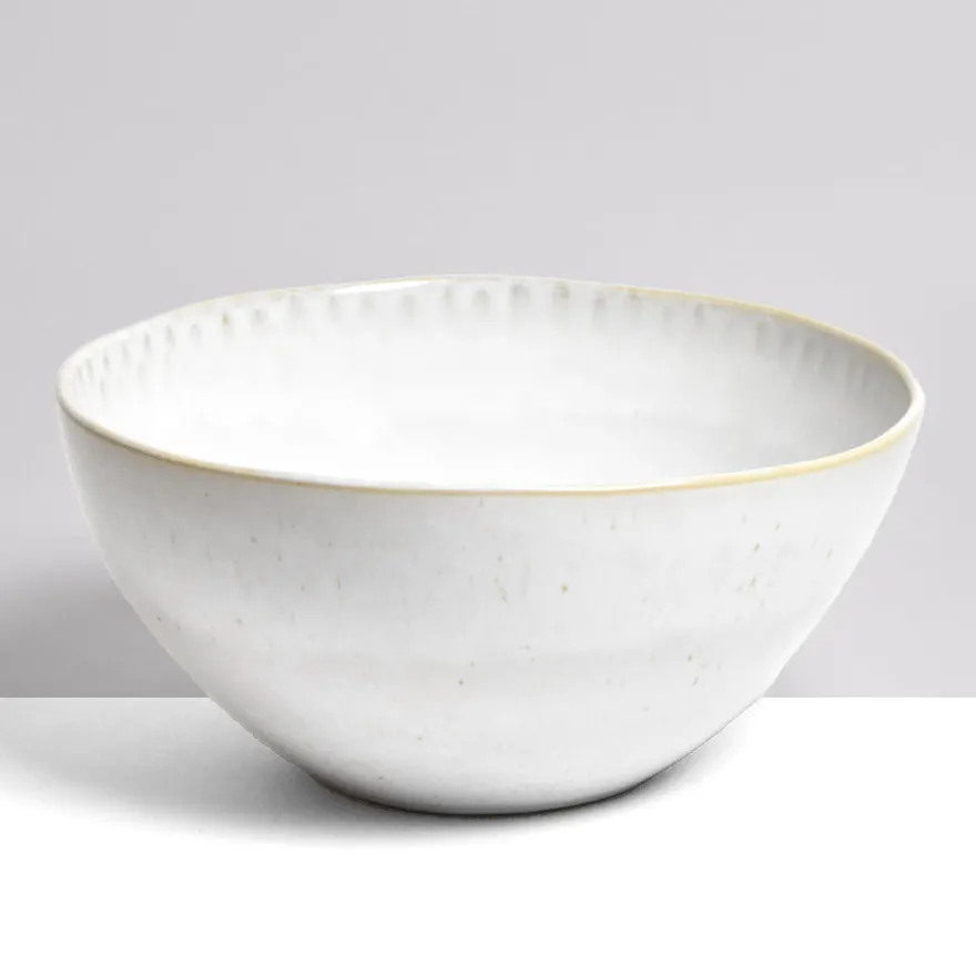 Un grand saladier en céramique tout en rondeur, parfait pour accueillir vos plus belles salades composées ou illuminer vos préparations gourmandes. Dans vos cuisines, en tant que corbeille à fruits, il vous donnera envie de faire un tour au marché pour le remplir de fruits frais et de légumes colorés.