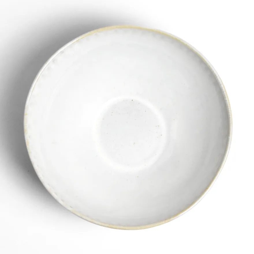 Émail : Blanc audacieux, un émail blanc réactif et légèrement moucheté, appliqué sur l’ensemble de la pièce. Les extrémités sont émaillées avec une pipette.