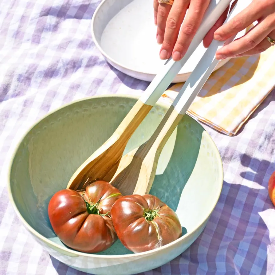 Un grand saladier en céramique tout en rondeur, parfait pour accueillir vos plus belles salades composées ou illuminer vos préparations gourmandes. Dans vos cuisines, en tant que corbeille à fruits, il vous donnera envie de faire un tour au marché pour le remplir de fruits frais et de légumes colorés.