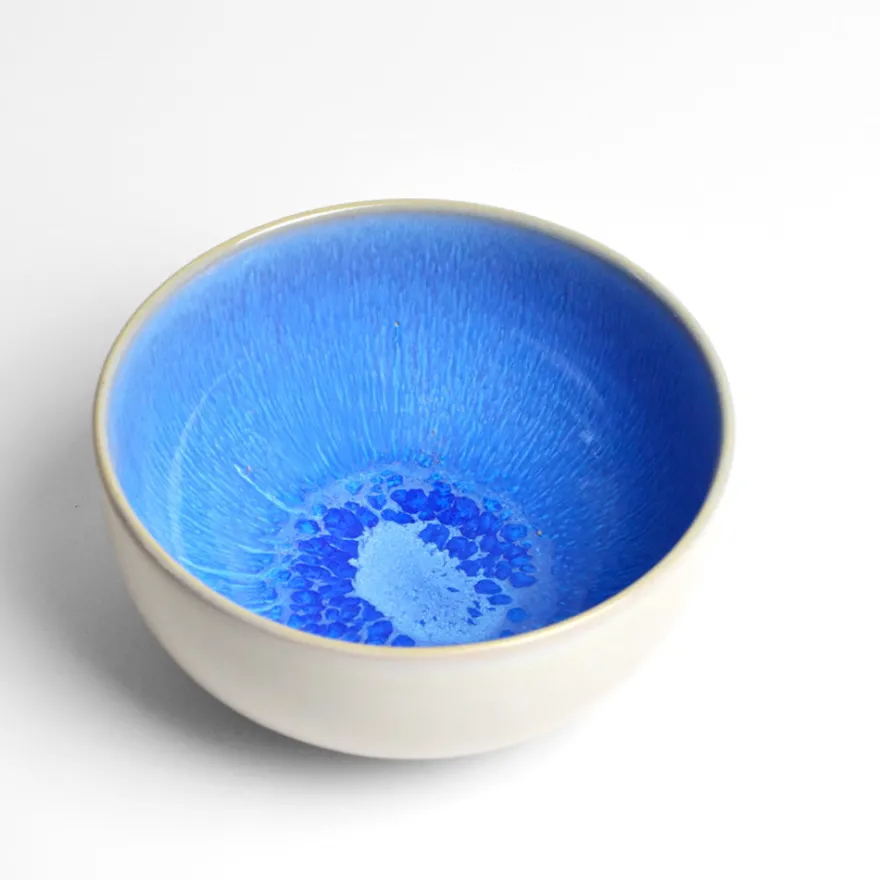 Émail : Un bleu profond, entre lapis et azur, qui prolonge l’été sur vos tables. Chaque pièce révèle des effets de matière uniques, entre éclat brut et douceur minérale.
