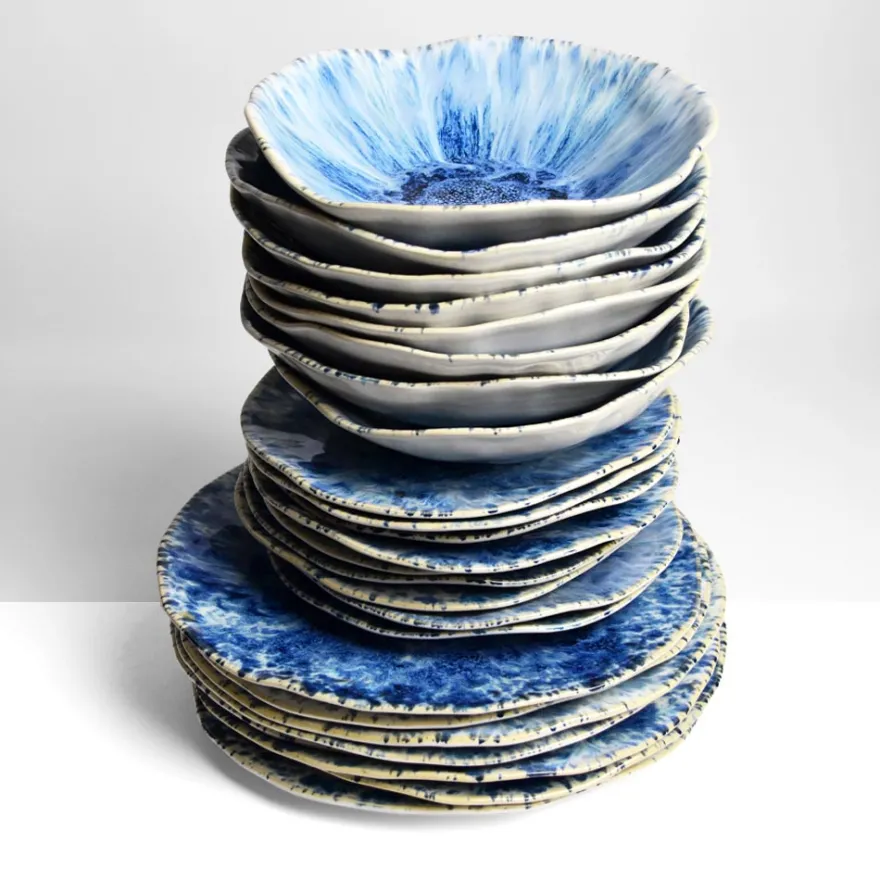 - 8x Grande assiette Onda | Bleu écume