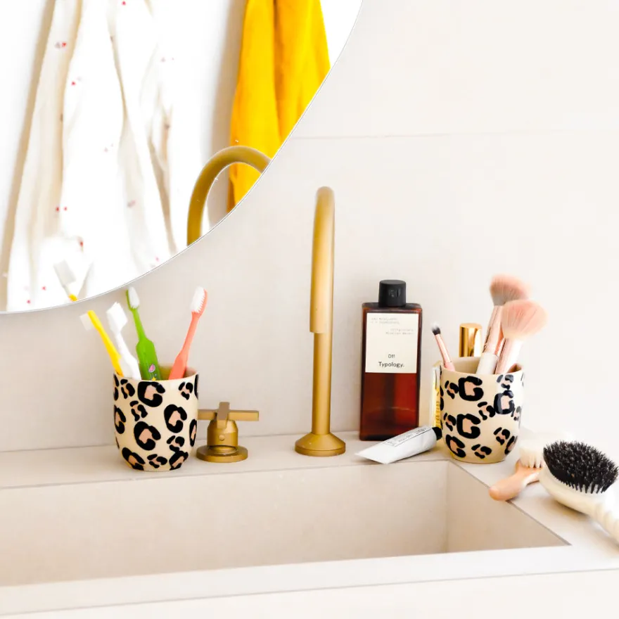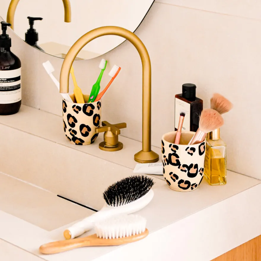 Émail : Chaque tache est appliquée à la main, à l’éponge, dans un geste libre et instinctif. Un motif vivant, jamais figé, qui rend chaque pièce unique. L’élégance du léopard, revisitée par la main de l’artisan.