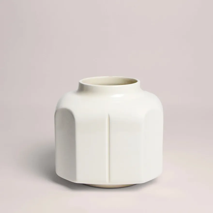 Émail : Un blanc minéral et doux, qui laisse parler la forme. L’émail révèle les lignes sculpturales du vase avec subtilité, et apporte une touche d’équilibre, entre sobriété et élégance.